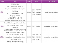 ACCA国内共有6个代表处,分别为北京代表处,上海代表处,成都代表处,广州代表处,深圳代表处和香港代表处。这些代表处具体的地址和联系电话如下图:(如地址电话有更新,以最新的地址和电话为准) 那么,这些ACCA代表处又有那些作用呢? ACCA代表处主要有这